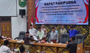 Pernyataan tersebut disampaikan Sekdako Dumai dalam sambutannya usai menyerahkan dokumen Rancangan Perubahan Kebijakan Umum Anggaran Pendapatan Belanja Daerah (KU-APBD) TA 2024 serta Rancangan Perubahan Prioritas dan Plafon Anggaran Sementara (PPAS) TA 2024 dalam Rapat Paripurna, di Ruang Kamboja Lantai IV Kantor Wali Kota Dumai, Jumat (2/8/2024).