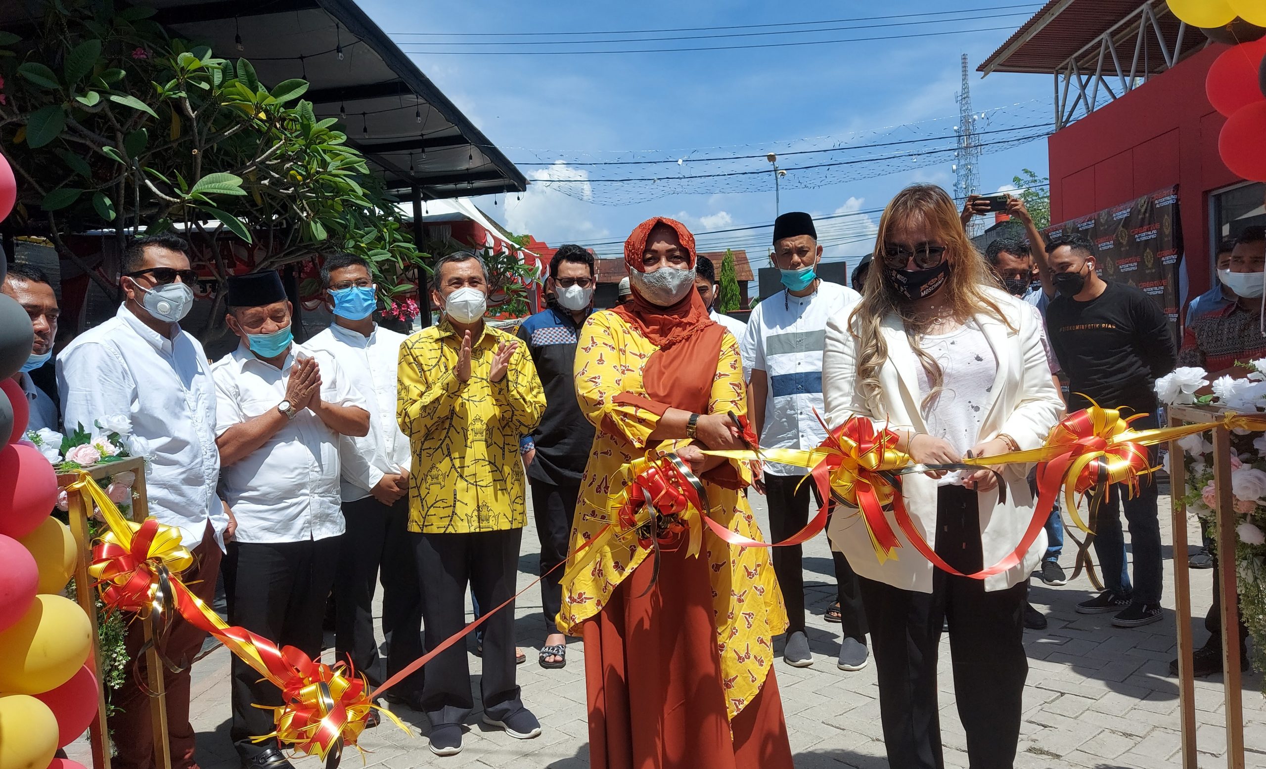 celahkotaNEWS.com – DUMAI- Gubernur Riau (Gubri), Syamsuar didampingi Istri Misnarni Syamsuar, bersama Walikota Dumai, Paisal meresmikan Byan’ Cafe ‎sekaligus  Creative autodetriling dan automodified serta Car Wash, di jalan Sudirman, kota Dumai, pada Jumat (2/4/2021)‎.