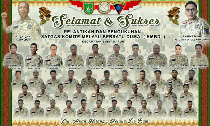 CelahkotaNEWS.com || DUMAI – Pelantikan dan pengukuhan satgas Komite Melayu Bersatu Dumai (KMBD) akan melaksanakan pengukuhan dan pelantikan pengurus satgas Komite Melayu Bersatu Kecamatan Bukit Kapur pada Minggu (02/12/18)