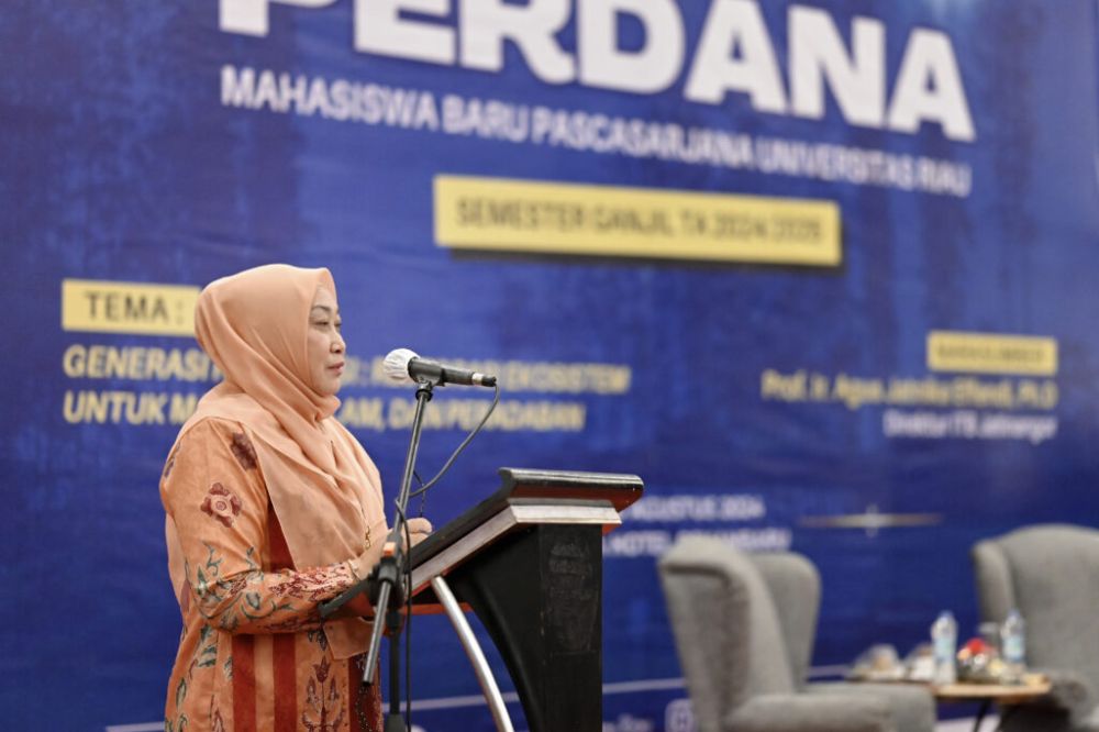 Rektor UNRI Prof Dr Sri Indarti SE MSi mengatakan kami selaku pimpinan Universitas merasa berbangga dengan bergabung saudara sekalian di keluarga besar Unri, dari sekian banyak peserta yang ikut mendaftar di Pascasarjana UNRI.