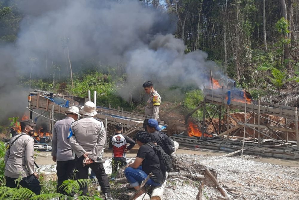 Sementara itu, 2 rakit peti di Desa Pasir Plampian juga langsung dimusnahkan dengan cara dibakar. Para pelaku sudah melarikan diri saat polisi tiba di lokasi.