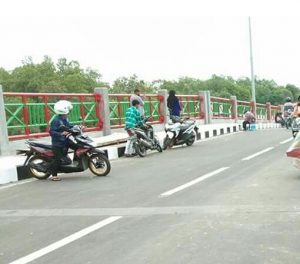 Tak hanya Agus Sunarto, yang datang, ada pula beberapa kelompok remaja putara dan putri yang menggunakan kendaraan roda dua mengabadikan momen momen indah di atas jembatan yang luas tersebut.