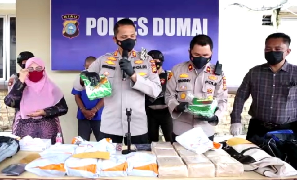 “Atas informasi tersebut, tim Opsnal Satres Narkotika melakukan penyelidikan untuk memastikan informasi tersebut,” jelas Kapolres Dumai AKBP Andri Ananta Yudhistira didampingi Wakapolres Kompol Sanny Handityo dan Kasat Resnarkotika AKP Yoyok Iswadi, pada Konferensi Pers Selasa (29/06/2021).